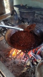 Photo : un biko, gâteau de riz sucré que nous cuisinons.