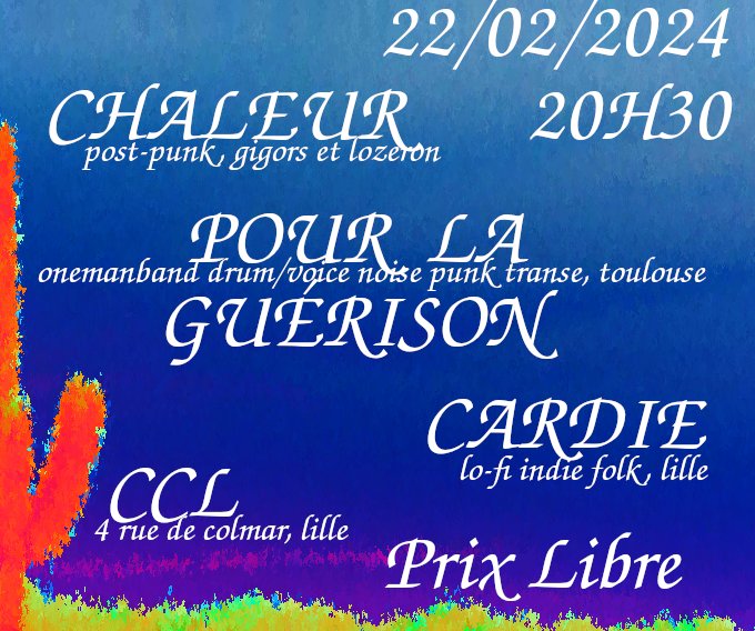 Accueil > Agenda > [CCL] 20h30 concert CHALEUR + POUR LA GUÉRISON + CARDIE