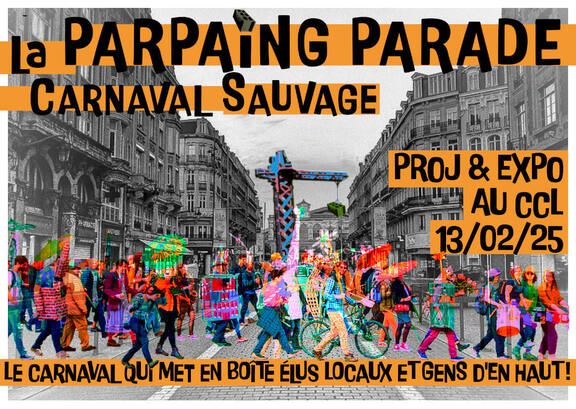Depuis 2022, une fois par an, on inverse les rôles et on plonge à grandes brasses dans la satire. À contre-courant des grands défilés des saisons culturelles lilloises, la Grosse Parpaing Parade se fabrique sans sponsor, à partir de briques et de brocs. À chaque fin d’année scolaire, le joyeux carnaval tombe à pic et propose de faire en grandes pompes le bilan de nos institutions, de ceux et celles qui nous gouvernent, par la politique ou par l’argent. Venez découvrir ou revivre à travers l’expo et la projection l’édition 2024, et peut-être rejoindre l’orga de l’édition 2025 !