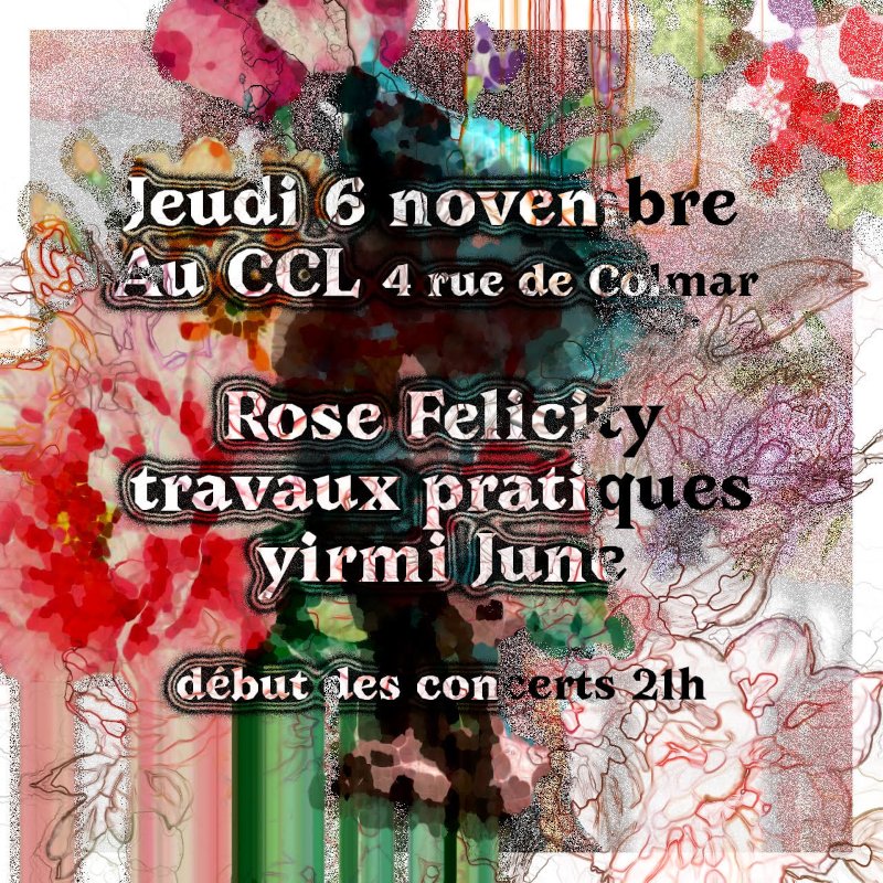 Accueil > Agenda > [CCL] 20h30 concert ROSE FELICITY + TRAVAUX PRATIQUES + YIRMI JUNE